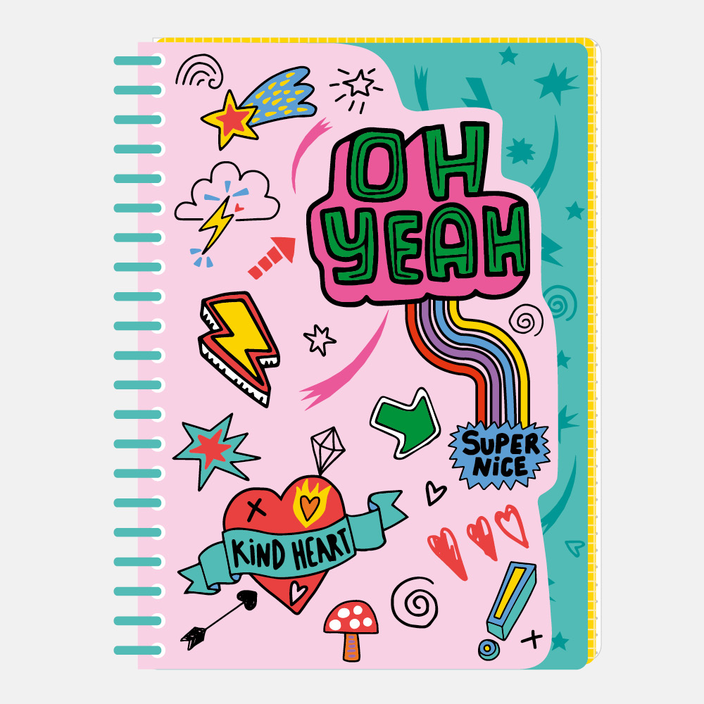 A brilliant notebook for drawing, doodling and writing. With themed shaped section at the front, and a mix of plain, dotted and grid paper, this 180 page notebook is 100% colourful!