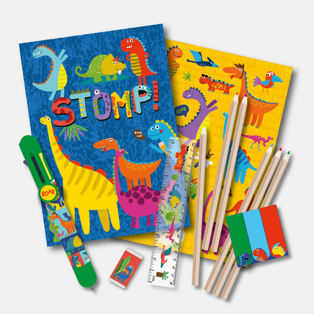 A complete stationery set for little creatives’ writing and drawing needs. A cute reusable, zipped pocket contains an A5 notebook with 96 pages, 2 sticker sheets, a pad of sticky notes, a rainbow pen, 6 full length coloured pencils, eraser and ruler!